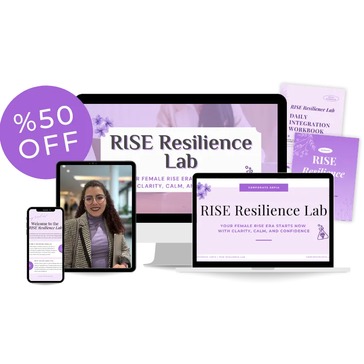 Inside the Rise Resilience Lab, I’ll show you how to lead with grounded feminine strength, unshakable confidence, and calm presence at work, in just 4 simple steps.