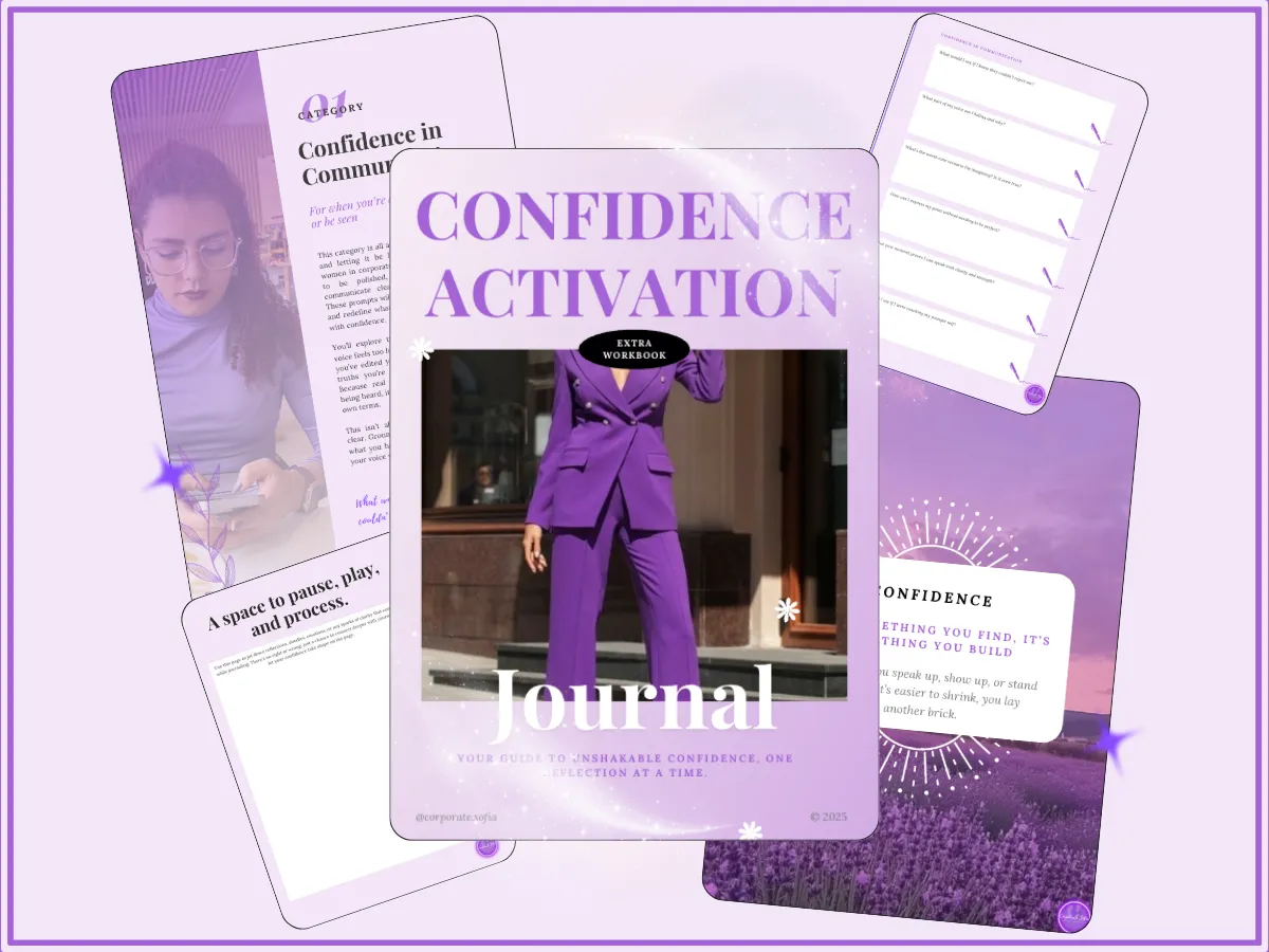 A printable workbook filled with reflection prompts, mindset resets, and mini challenges to help you rebuild self-trust and visibility in your day-to-day career.